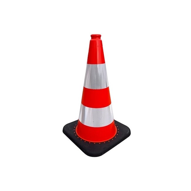 Flexibele verzwaarde reflecterende PVC afzet pion / verkeerspion deze pion weegt 2,3 kilo en is 500mm hoog