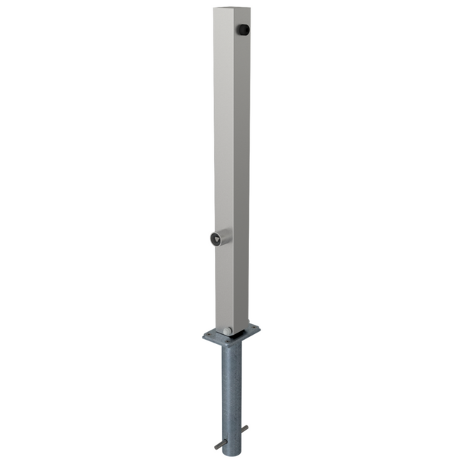 Neerklapbare afzetpaal met de afmeting 70 x 70 x 900 mm. Geschikt voor betonmontage en verkrijgbaar met een driekant- of cilinderslot.