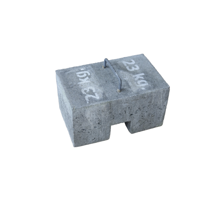 De betonnen ballastblokken zijn ideaal voor het vastzetten van objecten. Met een gewicht van 23 kg per blok. Dankzij de handige bevestigingsbeugel zijn ze eenvoudig te plaatsen, wat ze perfect maakt voor zowel tijdelijk als langdurig gebruik.