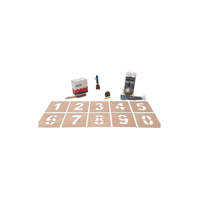 Magazijn nummering met wegenverf voor stellingen te nummeren