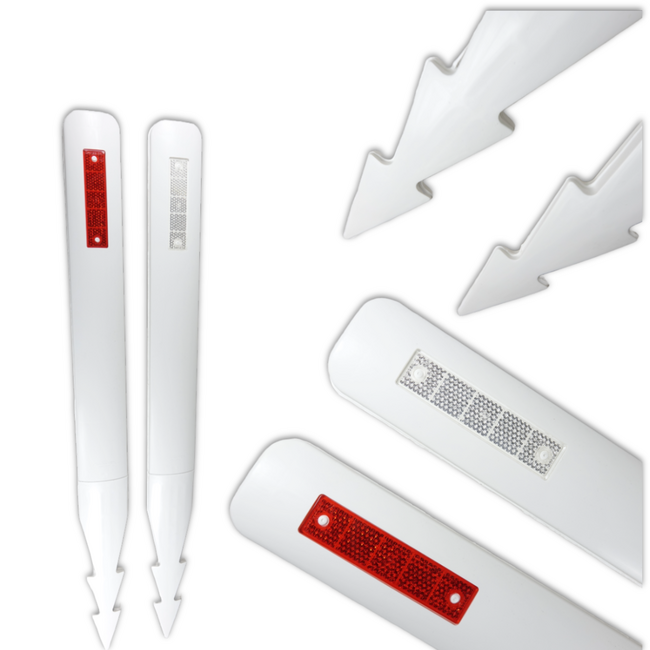 Verbeterde Zichtbaarheid: Dankzij de geïntegreerde reflectoren zijn onze bermpalen, of u ze nu bermpaaltjes, bermpaal of bermpalen noemt, zelfs 's nachts goed zichtbaar. Dit draagt bij aan een veilige verkeersomgeving.