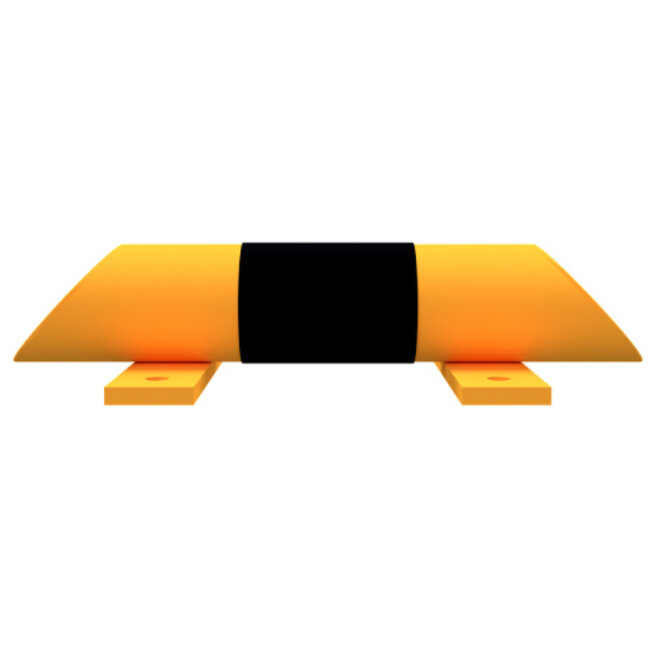 Stalen beschermbeugel voor vloerbalken Ø 76×86 mm. Ideaal als aanrijd- en stootbeveiliging in magazijnen en industriële omgevingen. Geel/zwart, montage op vloer.