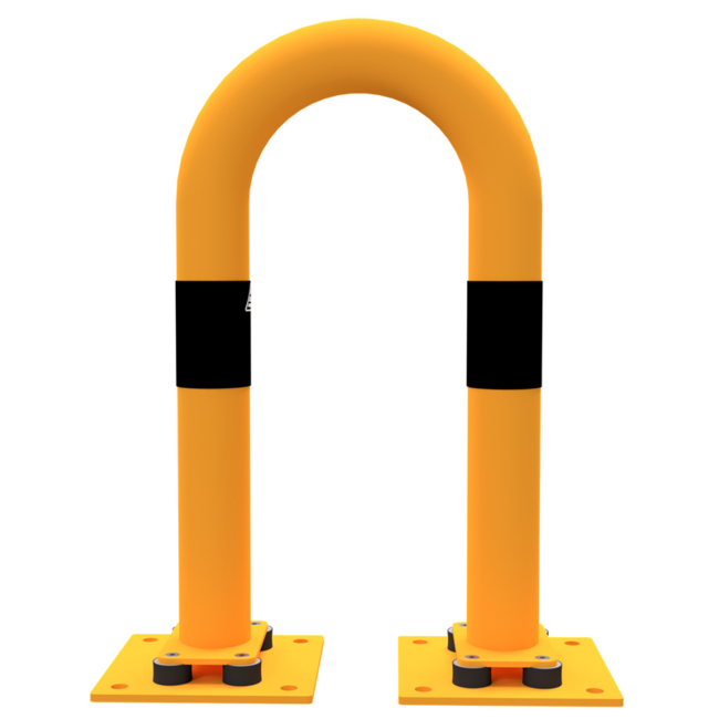 Flexibel veiligheidsbeugel, ontworpen om losscheuring uit de grond te voorkomen en schade te beperken een voertuigen.
