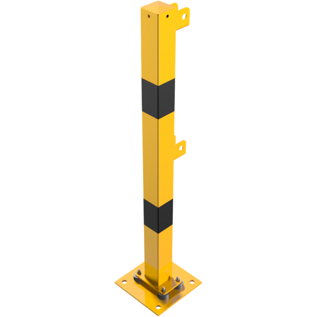 Beschermrailing modules 70 x 70 mm schokbestending door middel van rubberen delen geïntegreerd in de voet. Verminderd eventuele schade aan voertuigen en aan de railing zelf.