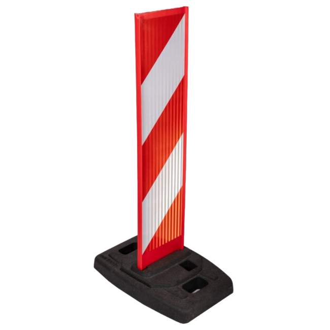 flexibele geleidebakens met klasse 2 reflecterende folie, ontworpen voor wegenbouwprojecten. Weerbestendig, ruimtebesparend en milieuvriendelijk met een duurzame voet van gerecycled rubber. Ideaal voor veilige, langdurige inzet.