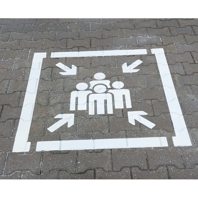 Door middel van de spuitmal met spuitbussen wegenverf van Traffictotaal kunt u ook eenvoudig zelf de verzamelplaats symbool aanbrengen. Wilt u dit toch liever overlaten aan onze professionals dan kan onze buitendienst de markering komen aanbrengen. Door middel van hogere druk wordt er machinaal het symbool op uw wegdek gespoten.