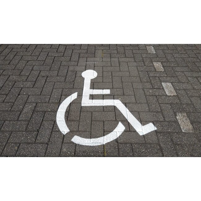 Door een symbool van een rolstoel op het wegdek te plaatsen voorkomt u onduidelijkheid en valt het goed op dat deze parkeerplaats bestemd is voor mindervalide met een mindervalide parkeerkaart.