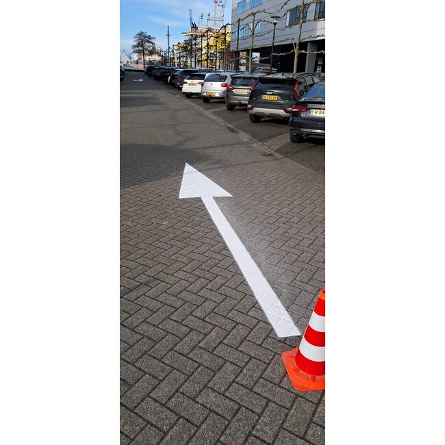 Duidelijke, duurzame pijlmarkeringen: officiële verkeerspijlen van 5 meter, machinaal aangebracht met slijtvaste wegenverf. Geschikt voor asfalt, beton en straatwerk. Ideaal om rijrichtingen te markeren. Snelle levering en vakkundige plaatsing