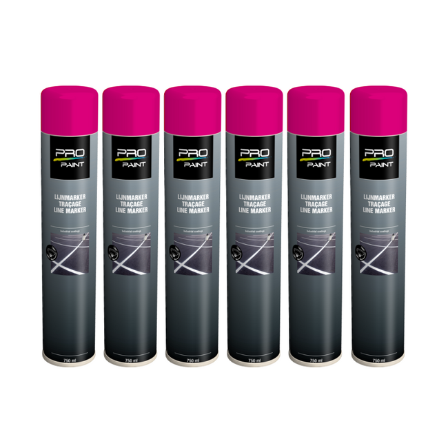 PRO-Paint Lijnmarker Roze is de perfecte oplossing voor het snel en gemakkelijk aanbrengen van heldere, slijtvaste markeringen op verschillende ondergronden. De inhoud van deze doos is 6 spuitbussen van 750 ml in de kleur roze, wat goed is voor ongeveer 75 meter aan lijnen. Deze markeringsverf hecht uitstekend op asfalt, beton, hout, straatwerk en steen, en is uitermate geschikt voor belijningen in fabriekshallen, magazijnen, parkeerplaatsen, sportvelden, vakantieparken en bij wegwerkzaamheden.