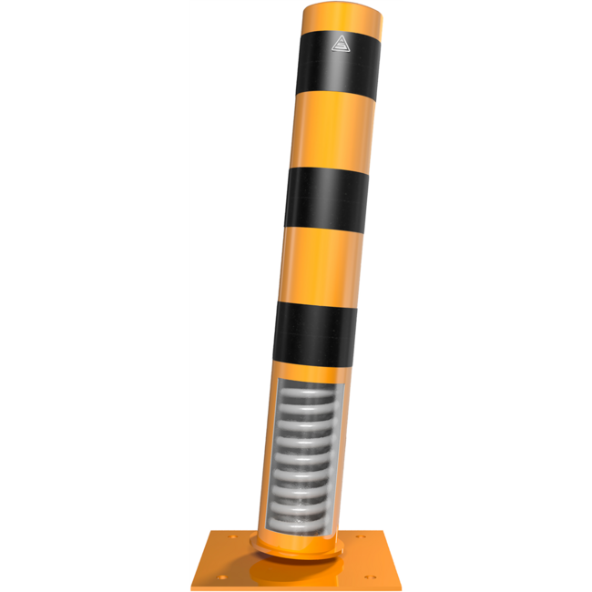 Wat deze stalen rampaal uniek maakt, is de inwendige veer die het mogelijk maakt dat de paal bij een botsing mee veert tot 15 graden. Dit innovatieve systeem helpt de impact te absorberen en vermindert de kans op schade aan voertuigen én infrastructuur. Dit is vooral handig in situaties waarin lichte botsingen kunnen voorkomen, zoals op logistieke terreinen of in parkeergarages.
