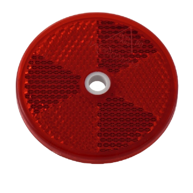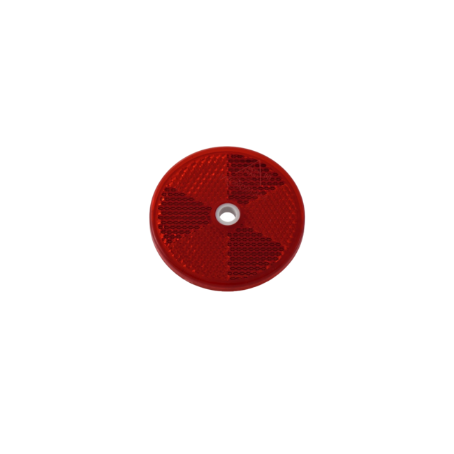 Deze rode reflector van 60mm rond is ideaal voor het verbeteren van de zichtbaarheid in verkeerssituaties. Eenvoudig ergens op te schroeven.