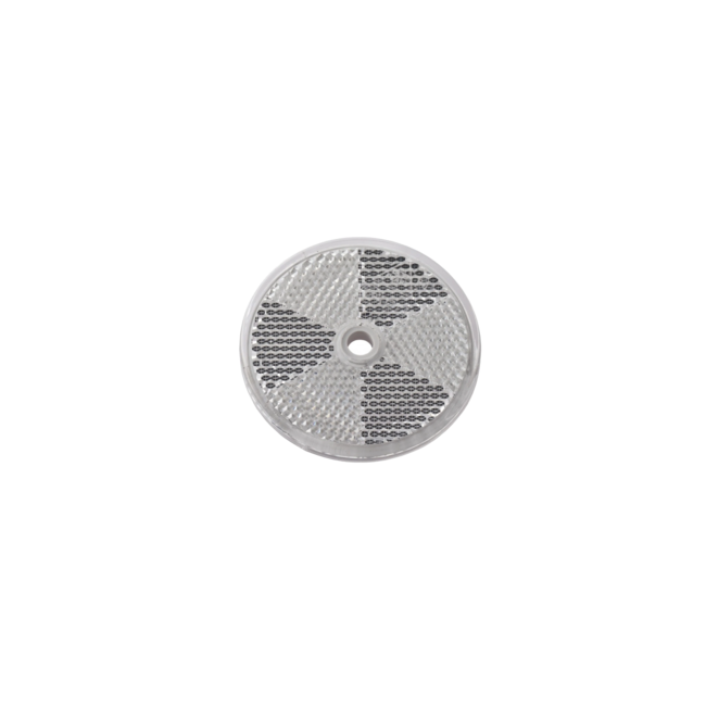 Deze witte reflector van 60mm rond is ideaal voor het verbeteren van de zichtbaarheid in verkeerssituaties. Eenvoudig ergens op te schroeven.