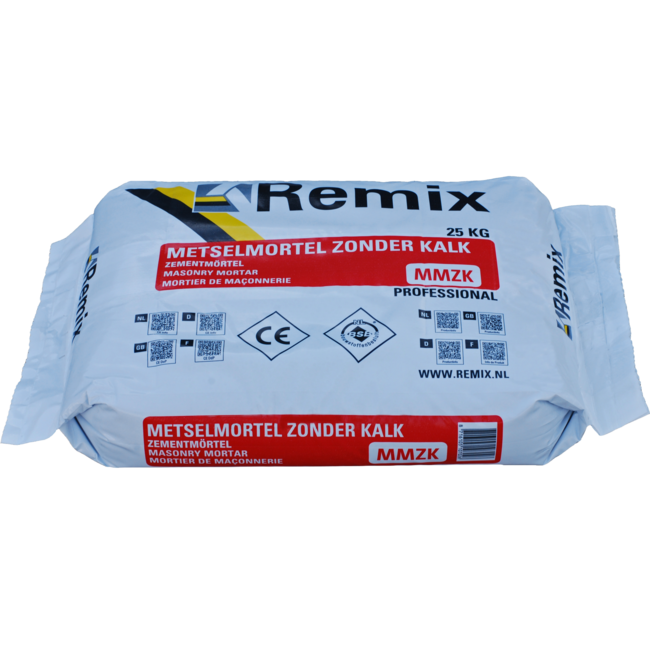 Een hoogwaardige droge mortel op cementbasis, conform NEN-EN 998-2 ‘mortels voor metselwerk’ en BRL 1905. Deze mortel is speciaal ontwikkeld voor het metselen van gangbare steensoorten en is bij uitstek geschikt voor weinig zuigende steensoorten. Dankzij de uitgebalanceerde samenstelling biedt MMZK uitstekende verwerkbaarheid en hechtkracht, wat zorgt voor een duurzaam en stabiel eindresultaat. Uitermate geschikt voor stelringen MMZK is dé ideale keuze voor het plaatsen van stelringen. Door de kalkvrije samenstelling heeft deze mortel een gecontroleerde en voorspelbare verharding, waardoor de stelringen stevig en nauwkeurig gepositioneerd blijven. Dit is essentieel voor een correcte montage en een langdurig stabiele constructie. Weerbestendig en veelzijdig Deze mortel is perfect voor metselwerk in alle weersomstandigheden, zowel binnen als buiten, en kan worden toegepast in dragende constructies. Dit maakt MMZK een betrouwbare oplossing voor diverse bouwtoepassingen waar sterkte en duurzaamheid vereist zijn. Kies voor Remix Metselmortel zonder Kalk (MMZK) als u op zoek bent naar een hoogwaardige en efficiënte mortel voor stelringen en algemeen metselwerk.