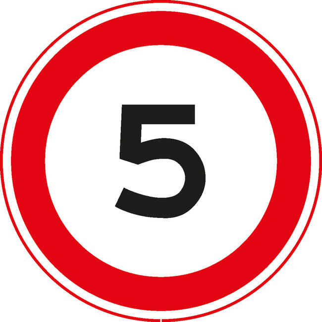 Verkeersbord RVV A01-5 geeft een maximumsnelheid van 5 km/h aan en is ideaal voor bedrijventerreinen, parkeerplaatsen en eigen terrein. Gemaakt van duurzaam, reflecterend aluminium voor optimale zichtbaarheid. Direct uit voorraad leverbaar.
