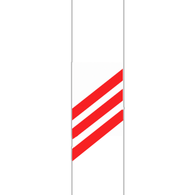 Waarschuwingsbaken links van de rijbaan op 240 m vóór een beweegbare brug of spoorwegovergang. Professioneel RVV-verkeersbord volgens NEN-EN 12899-1, vervaardigd met DOR (dubbel omgezette rand) voor extra stevigheid.
