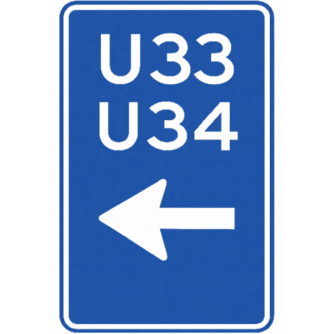 RVV verkeersbord BW502LH | Uitvalsroute | 33 en 34 - links