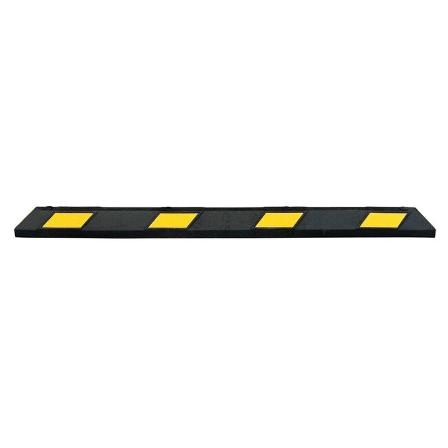 De parkeerstop van zwart rubber (1800x150x100 mm) is reflecterend geel. Kan eenvoudig worden gebruikt om de parkeerpositie te markeren. Het is ideaal voor gebruik op terreinen en bij parkeergarages.