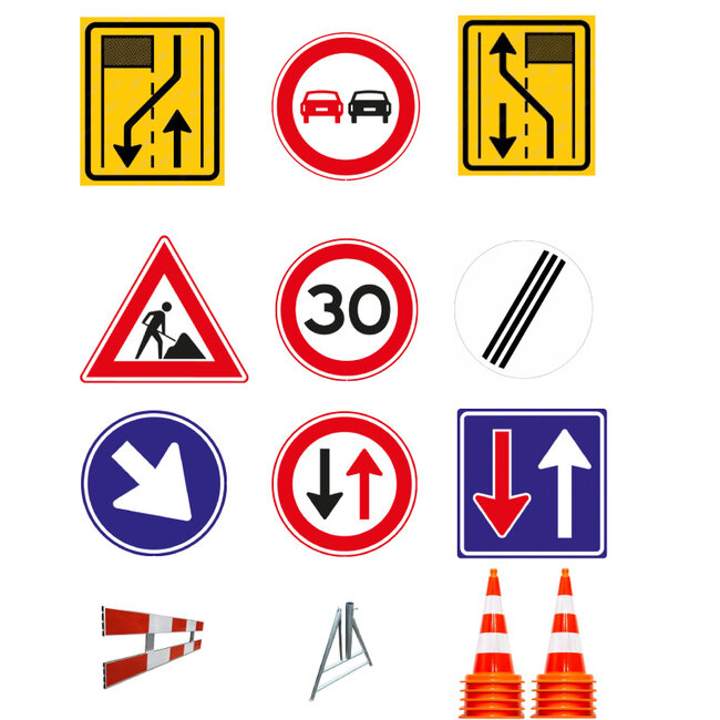 Bij ons kunt u de volgende materialen huren in 1 pakket om een dag afzetting neer te zetten voor enkelbaans wegafzetting. De materialen zijn alleen af te halen bij ons magazijn. Ook voor losse materialen zoals verkeerskegels of complete bakens, schrikhekken of borden huren kunt u ons benaderen via het contact formulier.