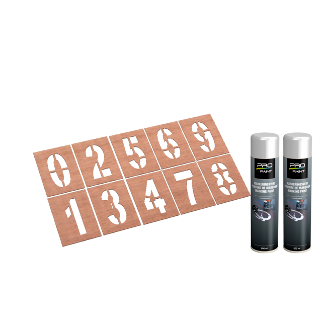 Onze spuitmallen om parkeervak nummers aan te brengen zijn gemaakt van duurzaam hout waardoor hij vaak nog een te gebruiken is. De parkeervak cijfers zijn circa 30 cm hoog en met dit pakket van 0 tm 9 kunt u eindeloos cijfers aan elkaar leggen om door te tellen. Doordat de mallen van de zelfde afmetingen zijn kunt u ook 2 willekeurige cijfers naast elkaar leggen. Bij deze spuitmal om zelf grondnummering aan te brengen in uw parkeervakken worden 2 spuitbussen wegenverf kleur wit meegeleverd.